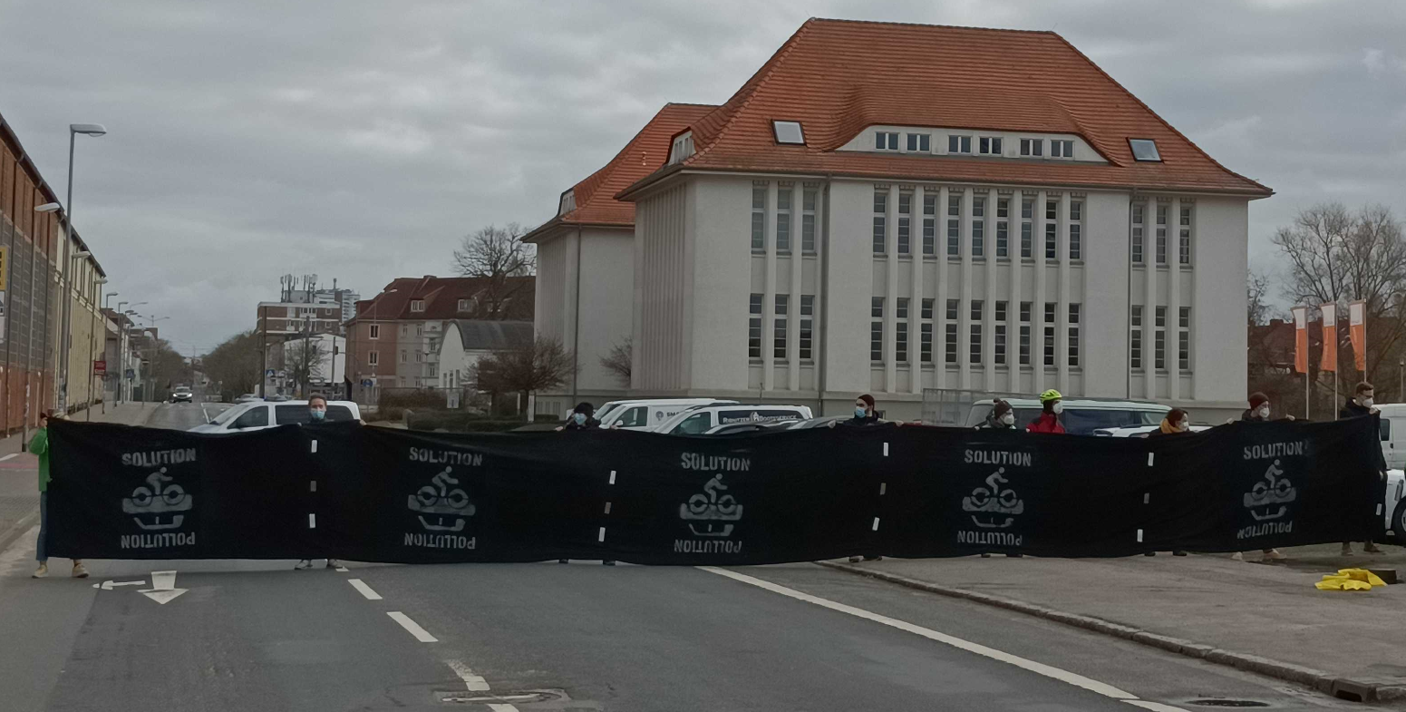 Die Ortsgruppen von VCD und Greenpeace fordern mit dem Radentscheid Rostock eine alternative Planung für eine menschengerechte Gestaltung der Werftstraße. Dafür haben sie konkrete Vorschläge vorgelegt. Am 14.3. demonstrierte das Bündnis unter Beteiligung der VCD Ortsgruppe gegen die geplante Asphaltschneise für Autoverkehr und machte mit einer ca. 19,5 Meter breiten Stoffplane deutlich, wie sich dieser massive Ausbau der Verkehrsinfrastruktur vor Ort darstellen würde.