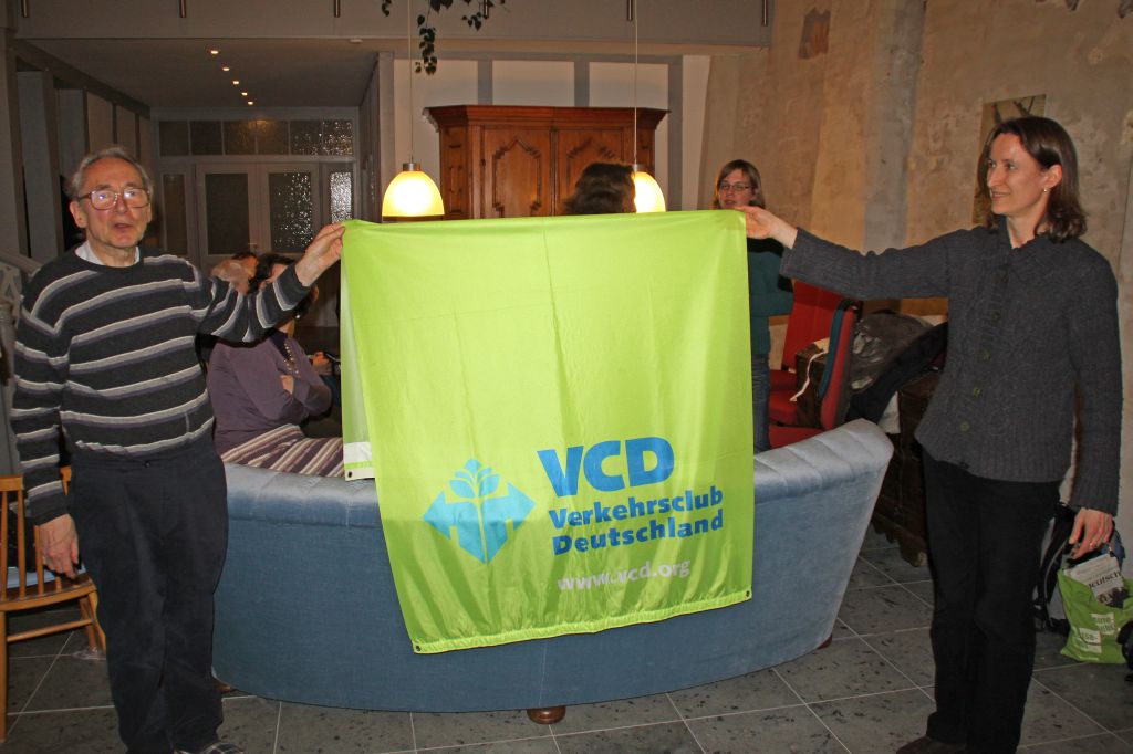 Anton Werner (ehemals Sprecher des VCD in Stralsund) und die damalige VCD-Verbandsreferentin Carolin Ritter beim Gründungstreffen der Regionalgruppe am 14.2.2012. Foto: Stralsunder Zeitung.