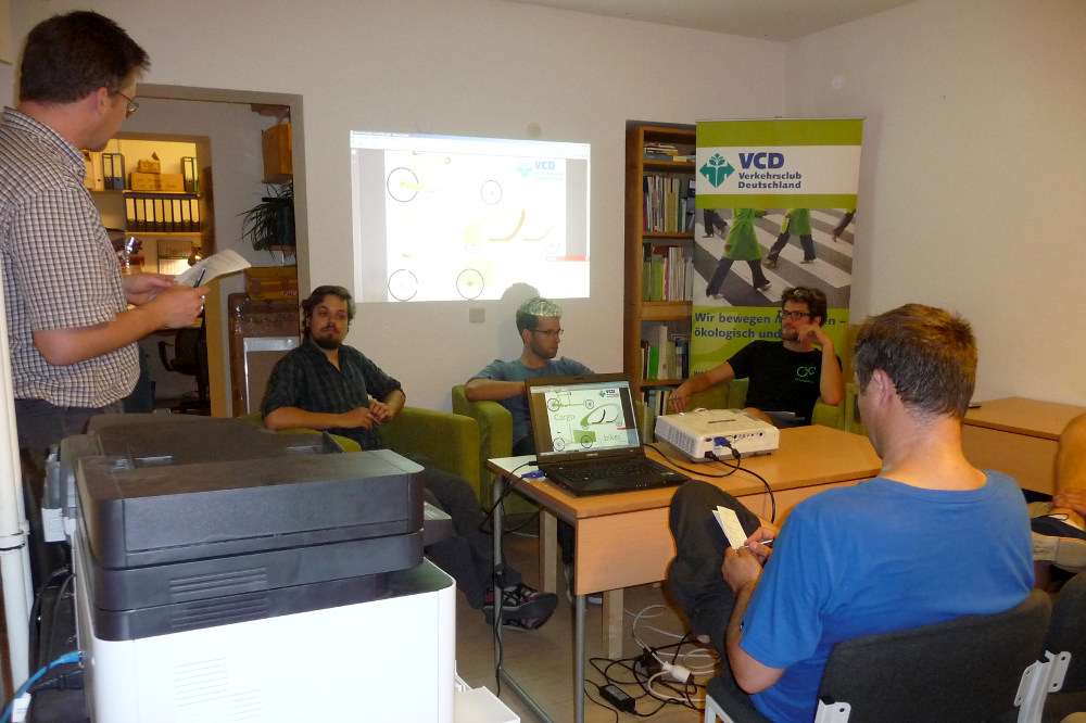 In unserer Diskussionsrunde der vergangenen Mittwochsrunde hatten wir Julian Saade, Felix Willems, Stephan Rodtheut und Wasilis von Rauch zu Gast. Julian Saade berichtete von seinem Projekt „VELOTransport“, mit dem er Familien, Privatpersonen und Gewerbetreibenden den Gebrauch von Lastenfahrrädern nahebringen möchte. Felix Willems und Stephan Rodtheut entwickelten zusammen die Idee eines Cargo-Bike-Pools - ein Lastenradverleih analog zum Carsharing - und stellten diese vor.