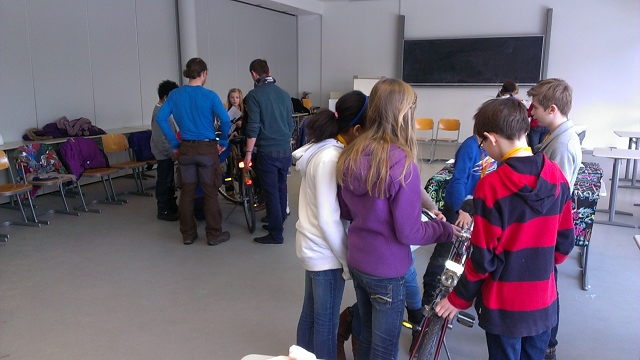 Unsere Botschaft an die Schüler: VCD Fahrradfahren macht Spaß und Du kannst unabhängig Deine Umgebung entdecken und Freunde besuchen. Fahrradfahren ist eine sportliche, kostengünstige aber auch klimafreundliche Möglichkeit, sich in der Stadt und im Umland fortzubewegen.“ In dem Workshop ging es darum, Räder auf ihre Funktionsfähigkeit zu überprüfen. Hierfür wurden Checklisten entwickelt, mit denen die Schüler mit gebrachte Räder überprüfen konnten. Diese praktische Herangehensweise kam bei den Schülern gut an.