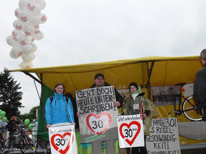 Auf dem Mobilitätstag gab es neben vielen Informationsständen zum Thema „Verkehr“ einiges zu sehen: Unter anderem eine nachgestellte Autounfall-Situation mit Rettungs- und Polizeieinsatz. Wir waren allerdings mehr mit der Vermittlung unserer verkehrspolitischen Themen beschäftigt und freuten uns über neue Unterschriften für die europäische Tempo30-Bürgerinitiative.