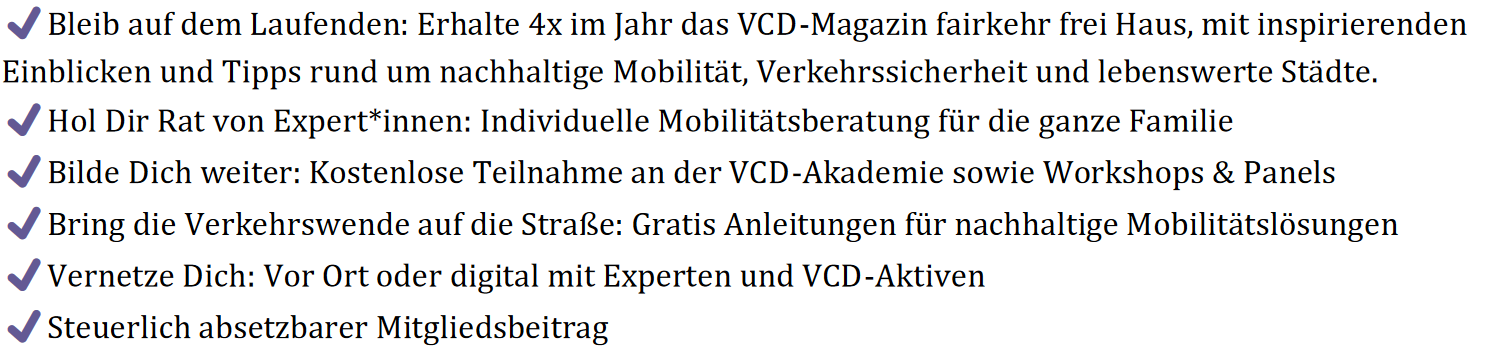 Mit Deiner Mitgliedschaft leistest Du einen wertvollen Beitrag für die Verkehrswende, denn gemeinsam können wir richtig was bewegen!