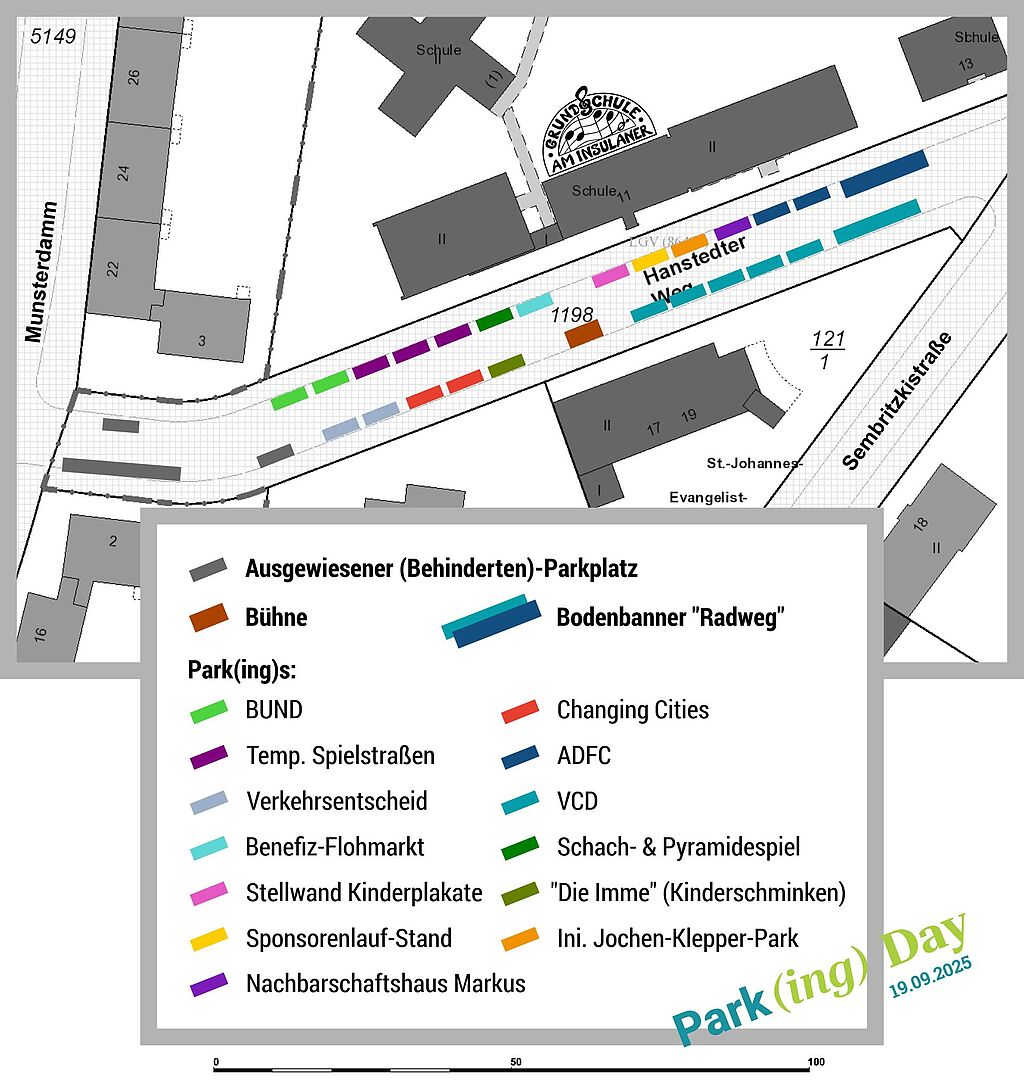 Den Auftakt des Park(ing) Day 2025 bildet dieses Jahr eine zentrale gemeinsame Aktion des VCD Nordost und der Grundschule am Insulaner als Teil des Netzwerk Schulwegsicherheit Steglitz-Zehlendorf zum Thema Schulstraßen