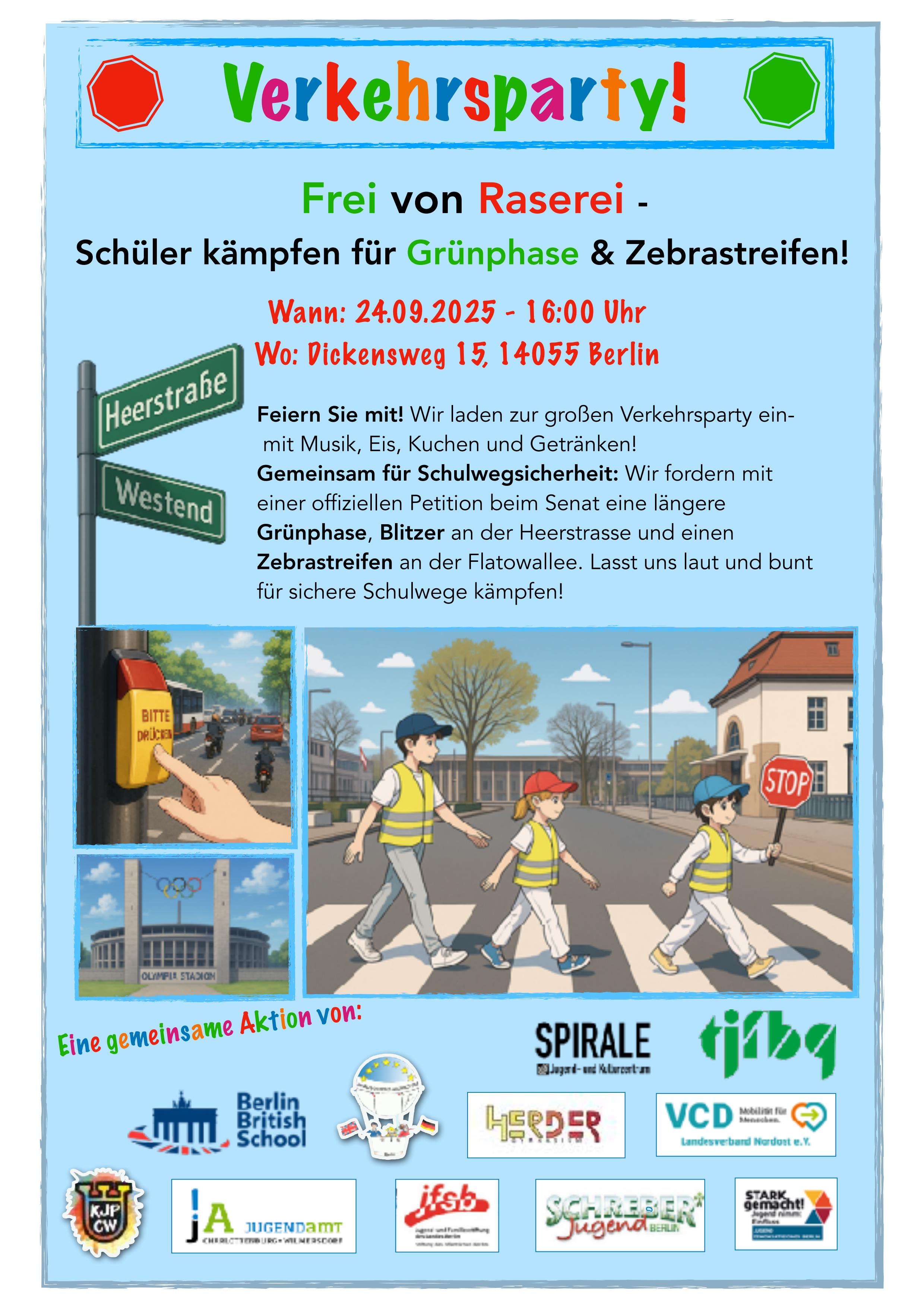 Am Mittwoch 24. September 2025 findet ab 16:00 Uhr am Dickensweg 15 in 14055 Berlin eine große Verkehrsparty statt.