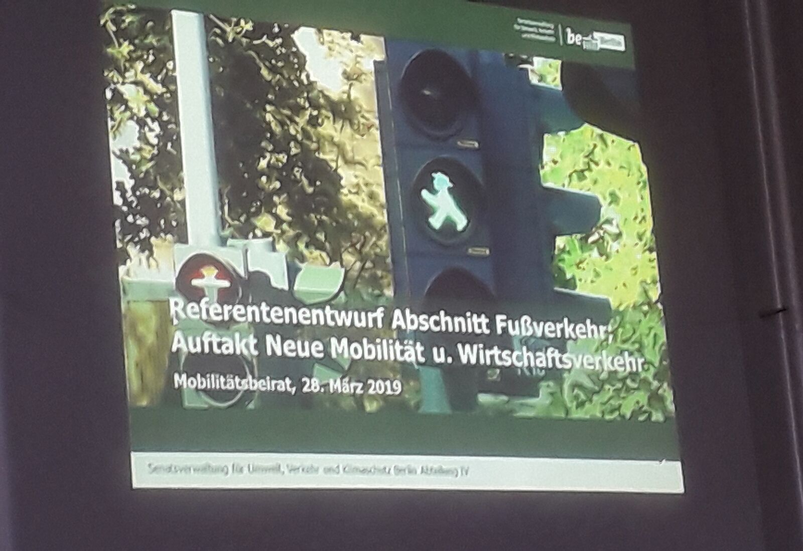 Der Fußverkehrsteil für das Berliner Mobilitätsgesetz wurde am 27.3. im Mobilitätsbeirat bei SenUVK als Referentenentwurf besprochen und geht nun in die Abstimmung zwischen den beteiligten Behörden.