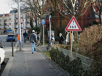 Die Initiative Friedrich Wilhelm Platz hat neue Verkehrsschilder entworfen und auch gleich selber angebracht, um an Konfliktpunkten zwischen Fahrrad- und Fußverkehr alle Beteiligten vor bestehenden Gefahren zu warnen. Klasse Aktion!