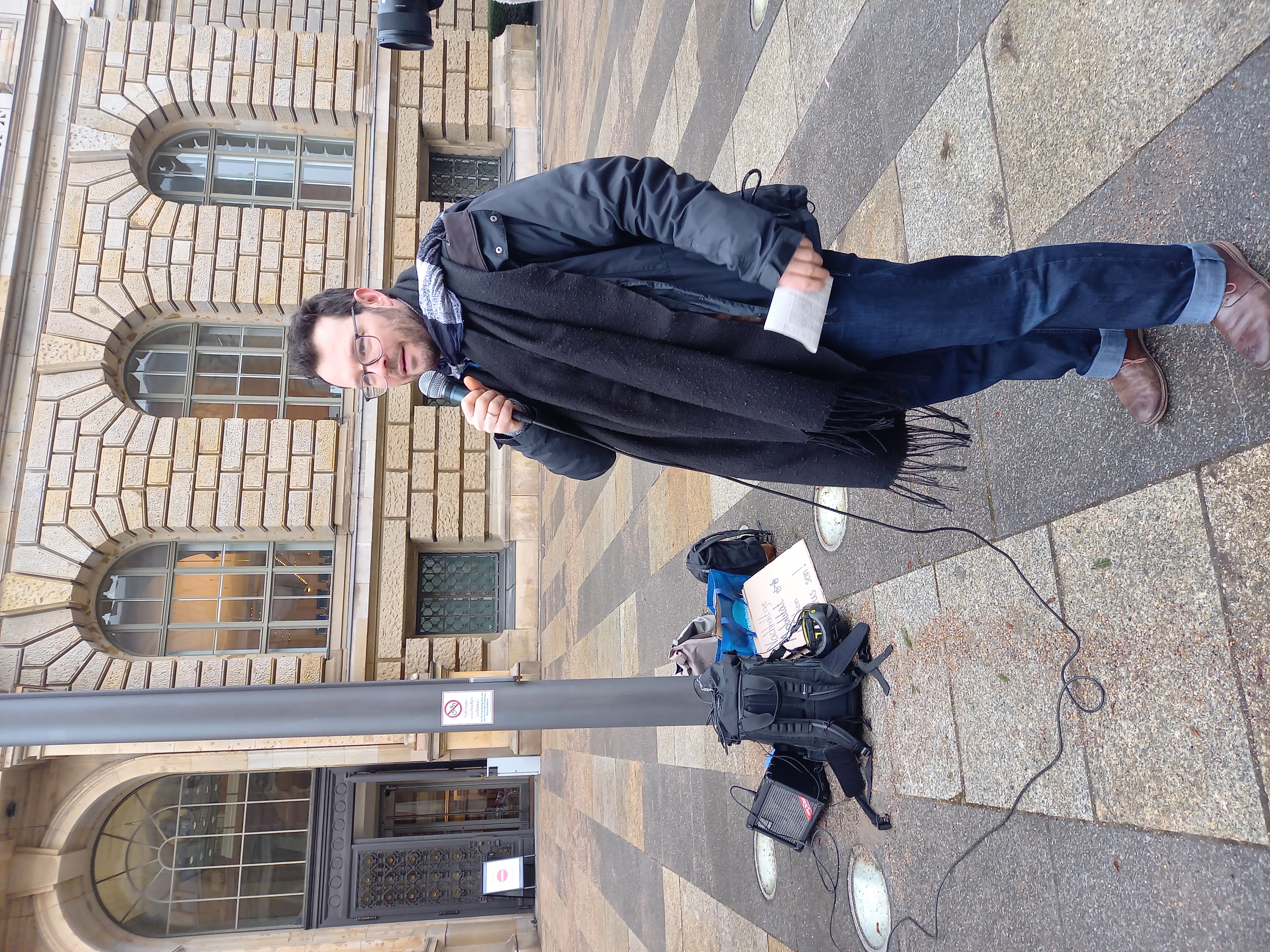 In seinem Redebeitrag betonte Daniel Zimmermann, Geschäftsführer des VCD Nordost, den zentralen Charakter von Mobilität als Grundbedürfnis.