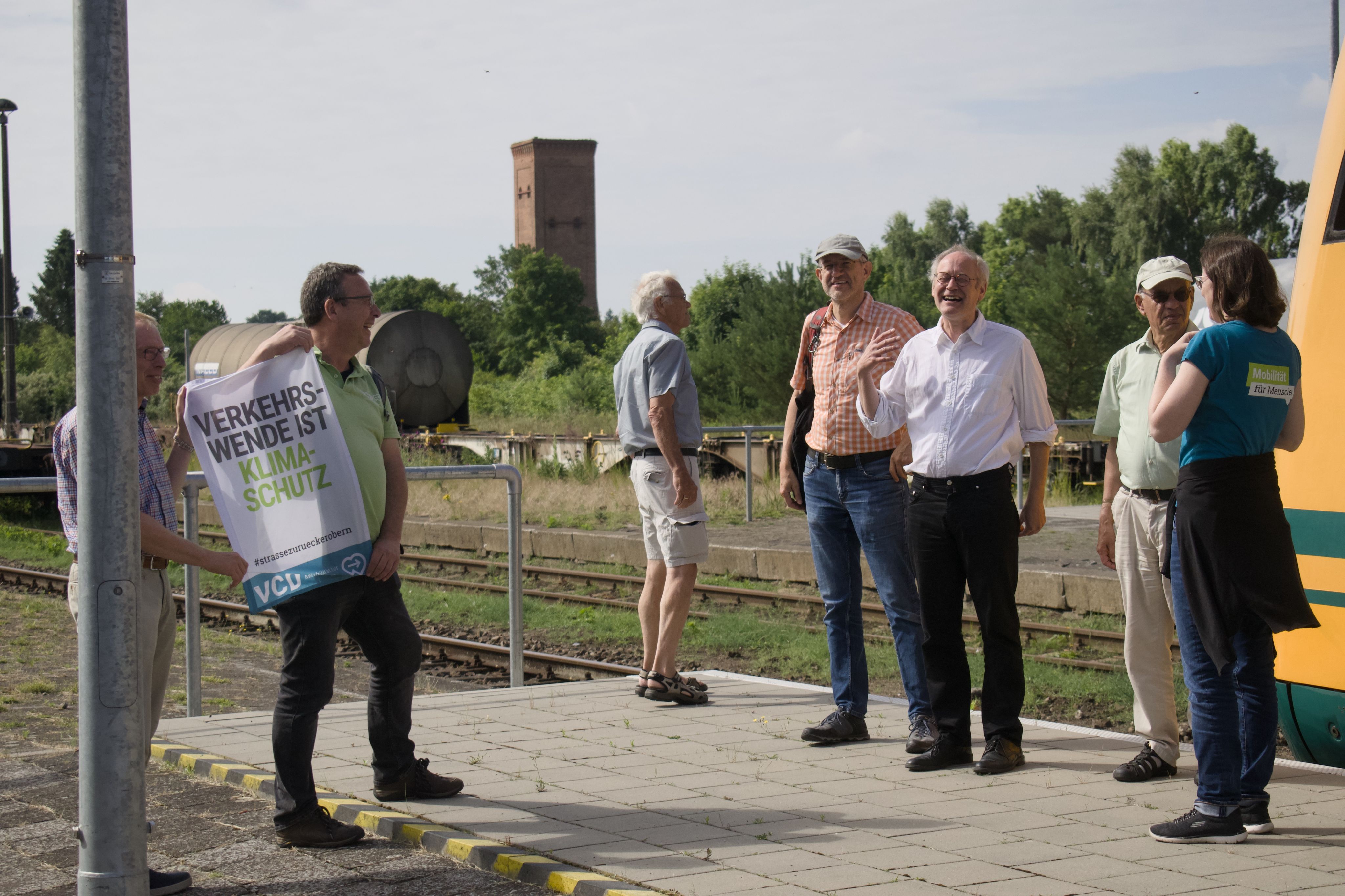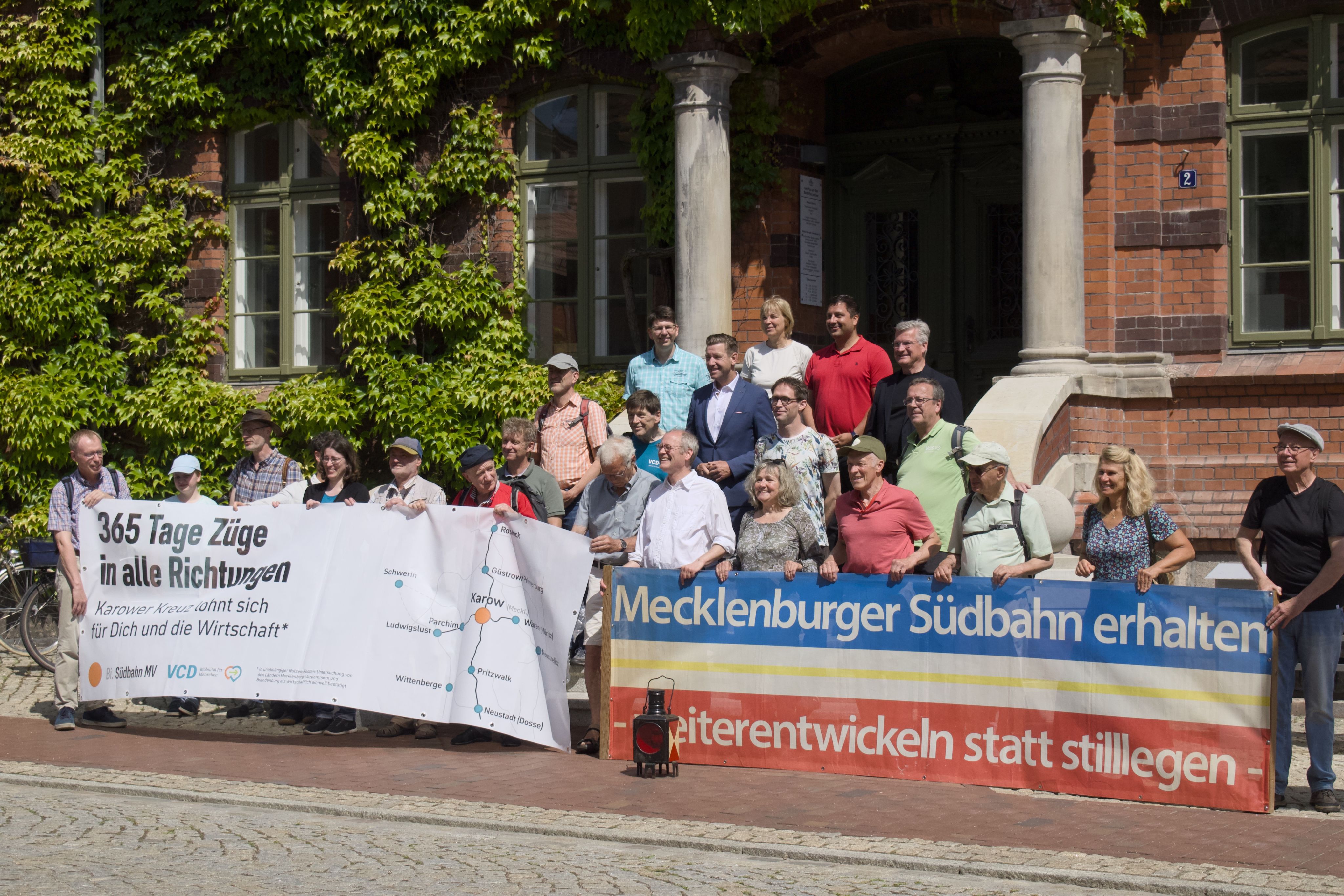 Der VCD Nordost und der VCD Brandenburg haben am 28. Juni 2025 ihre Mitglieder zu einer Exkursion nach Plau am See eingeladen, um sich zusammen mit der Bürgerinitiative (BI) Südbahn für den Ausbau des Karower Kreuzes einzusetzen. Guter Austausch mit Politikern und Engagierten sorgte für eine sehr gelungene Aktion!