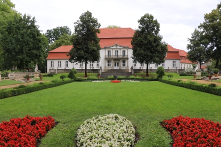 Nach 7 km erreichen wir das Schloss Wiepersdorf (http://schloss-wiepersdorf.de). Hier residierte einst Bettina von Arnim. Heute bietet die Kulturstiftung dort Stipendiat*innen im künstlerischen Bereich Raum und Ruhe zum Arbeiten.