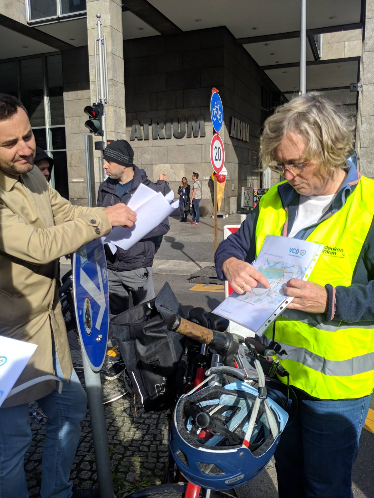 Trotz Wind und Regen hat sich Berlin als Vorreiter der Mobilitätswende gut präsentiert und wir konnten zeigen, dass es viele Möglichkeiten gibt, sichere Radwege umzusetzen. Besonders temporäre Maßnahmen und mikro-invasive Gestaltung wie an der Maaßenstraße diskutierten wir intensiv. Da fast alle Gäste eher Autofahrer sind als passionierte Radfahrer, war das Abenteuer im Alltag pur und wir freuen uns auf eine Wiederholung.